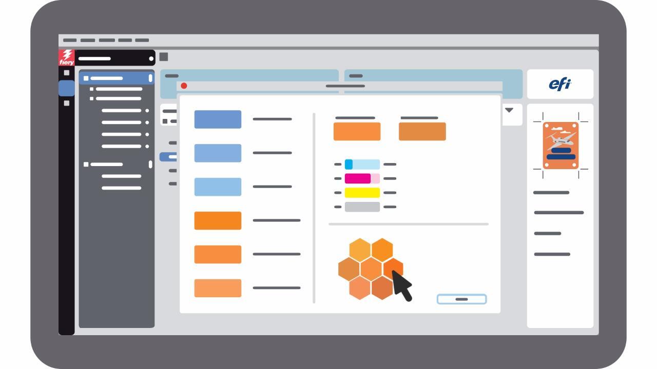 Fiery XF 7 comes with a new user experience — EFI Fiery Command WorkStation, the world’s most popular interface for the management, layout, and editing of digital print jobs. It conveniently connects to multiple Fiery servers at a time — whether driving inkjet or cutsheet printers — and connects multiple printers to a single Fiery XF server for truly unified print job management through a single interface. The visual Fiery Job Editor allows you to apply job-specific settings on the fly, or to change properties beyond workflow defaults. The Fiery Job Center delivers unrivaled print job management, with the same power and usability for both Microsoft® Windows® and Apple® macOS® users.